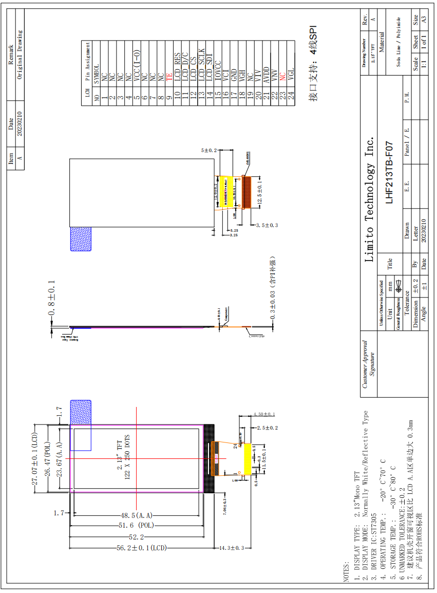 LIMITO IPS TFT LCD Display Mechanical Drawing