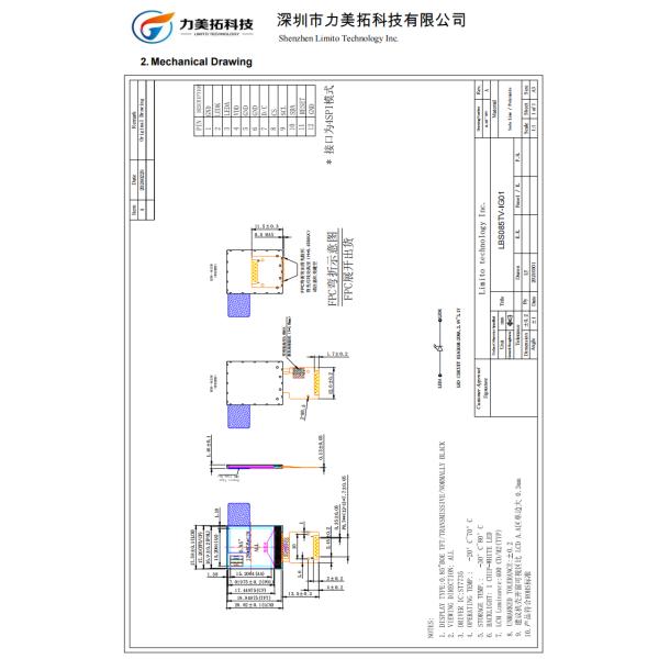 LIMITO IPS TFT LCD Display Mechanical Drawing